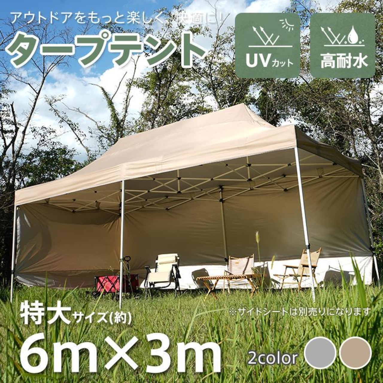 タープテント 3m×6m ワンタッチ 大型 高さ調節 日除け 軽量 折りたたみ レジャー スチール 耐水 UV 紫外線