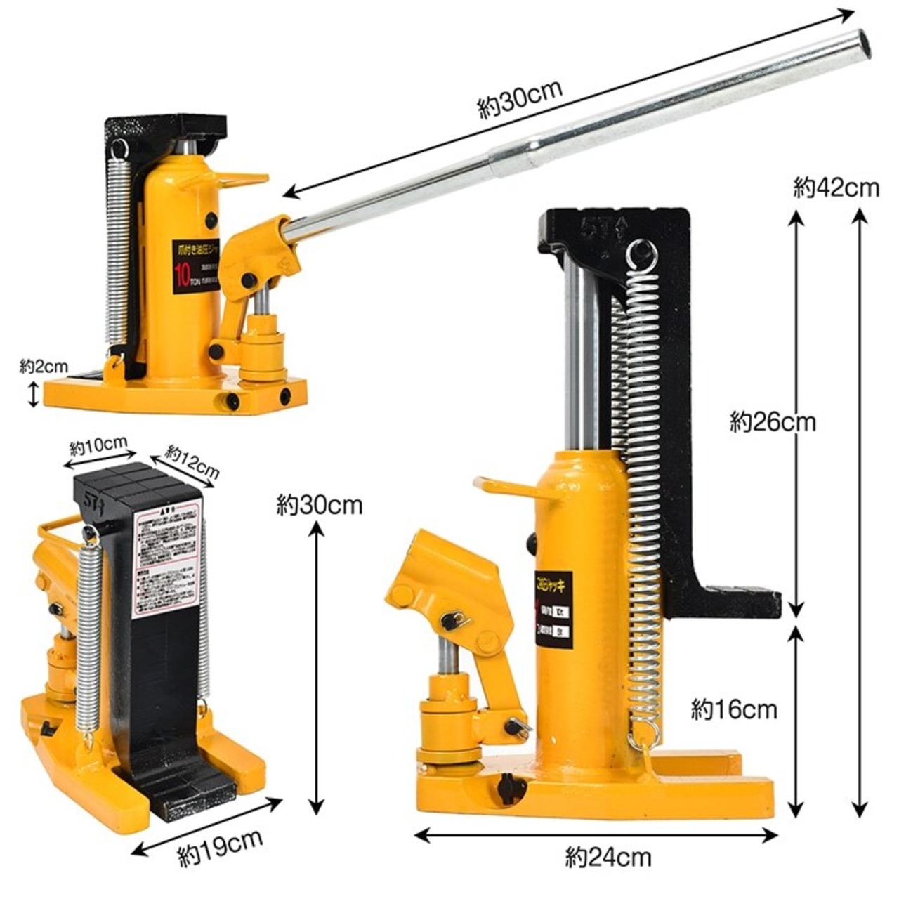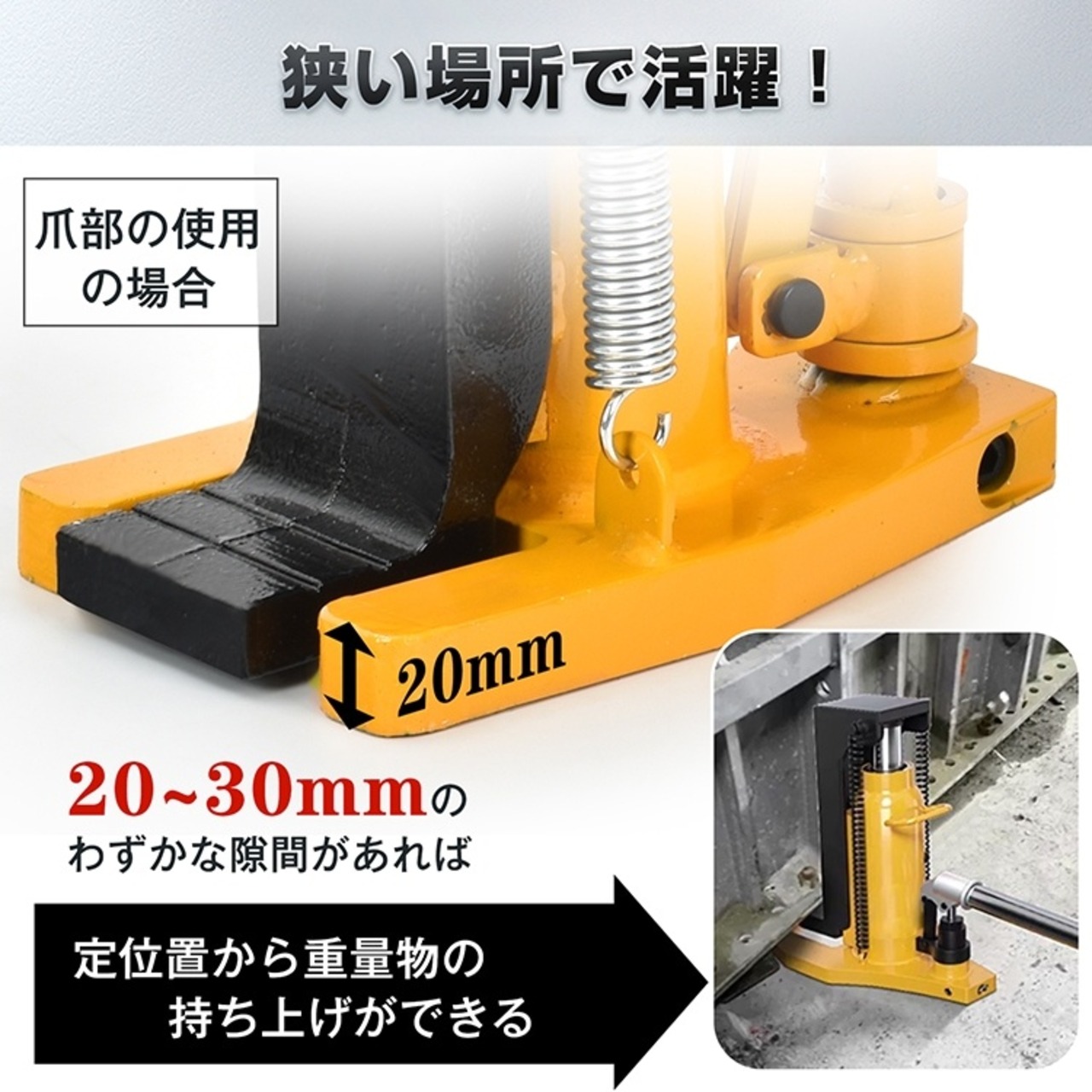 油圧ジャッキ 爪ジャッキ 爪部5t ヘッド部10t ジャッキアップ 低床ジャッキ ボトルジャッキ 工具 建築 補修