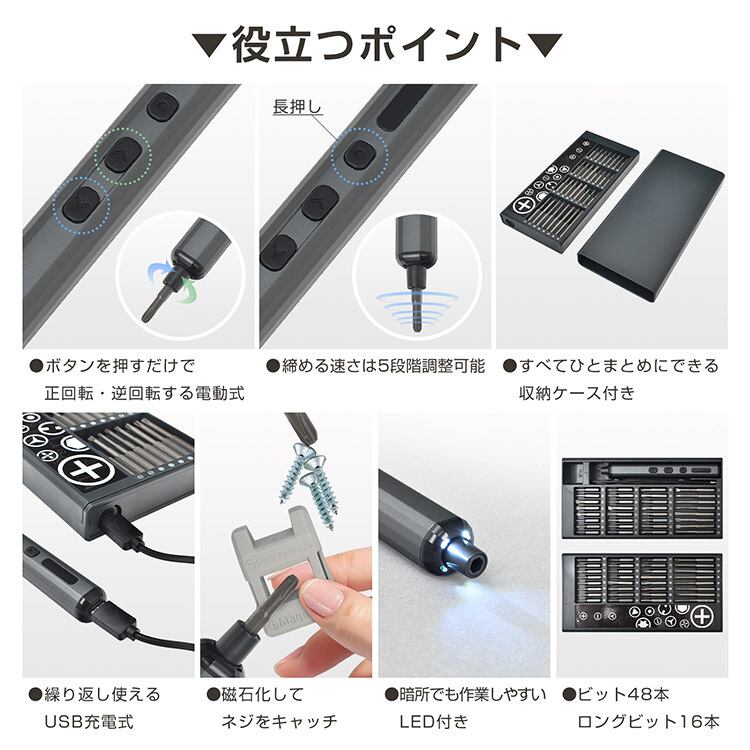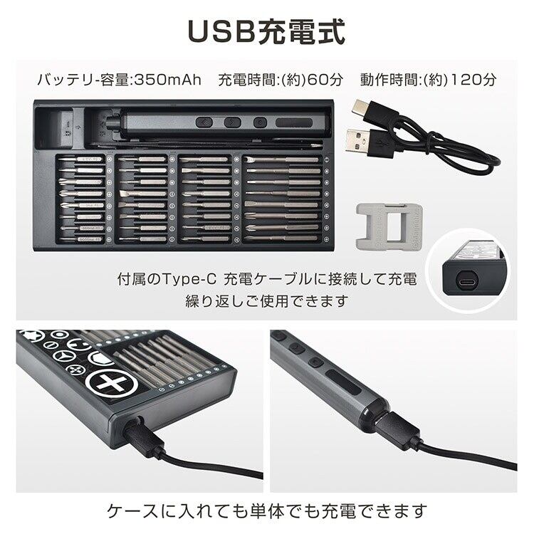 電動ドライバー USB 充電式 精密機器 修理 電動工具 電動ドリルドライバーセット コードレス DIY 工具