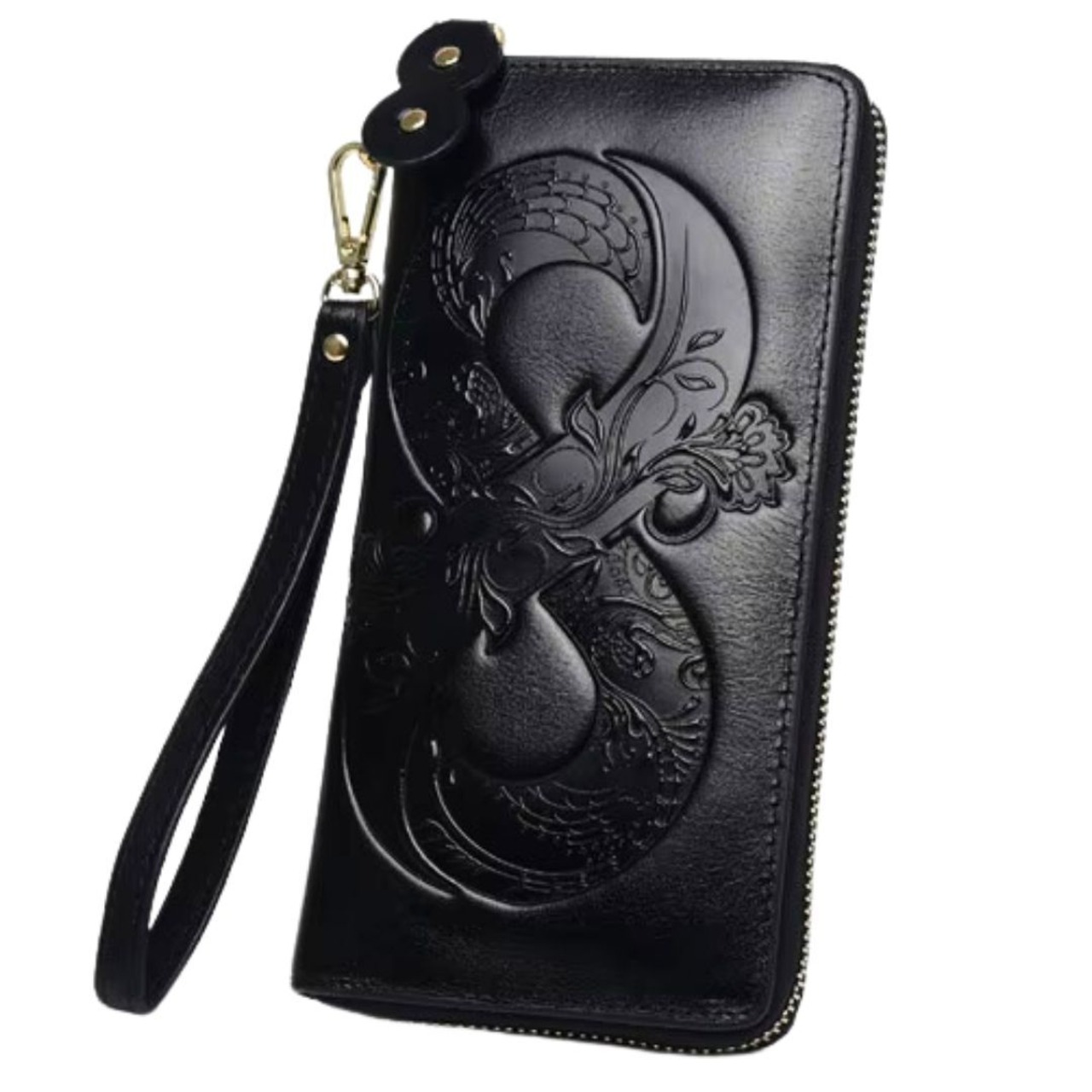 美しい花柄デザインに、「∞(無限)」のマークが刻印された特別な長財布です。風水では、無限のマークは永遠の繁栄や無限の富を象徴し、金運や成功運を高めるとされています。持つ人の運気を上昇させ、財運を引き寄せるお守りのような財布です。