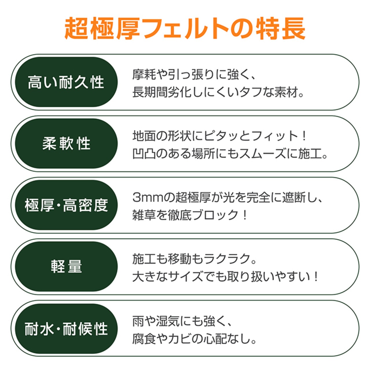 ■遮光率99.99%!太陽光をしっかり遮断し、雑草の光合成を防止。