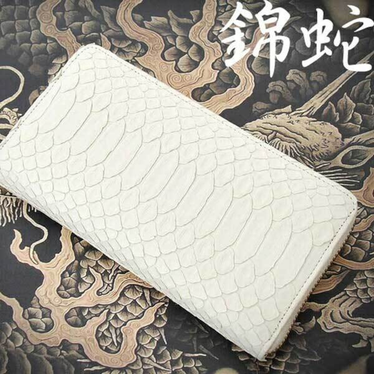 財運が上向くと言われる錦蛇革を贅沢に使用した金運祈願の財布。
