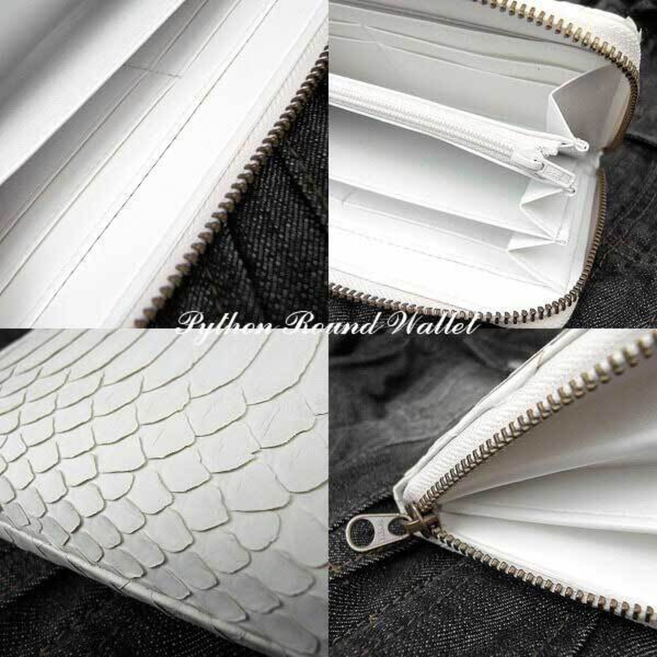 錦蛇皮を脱色してからホワイトに染色した財布で、