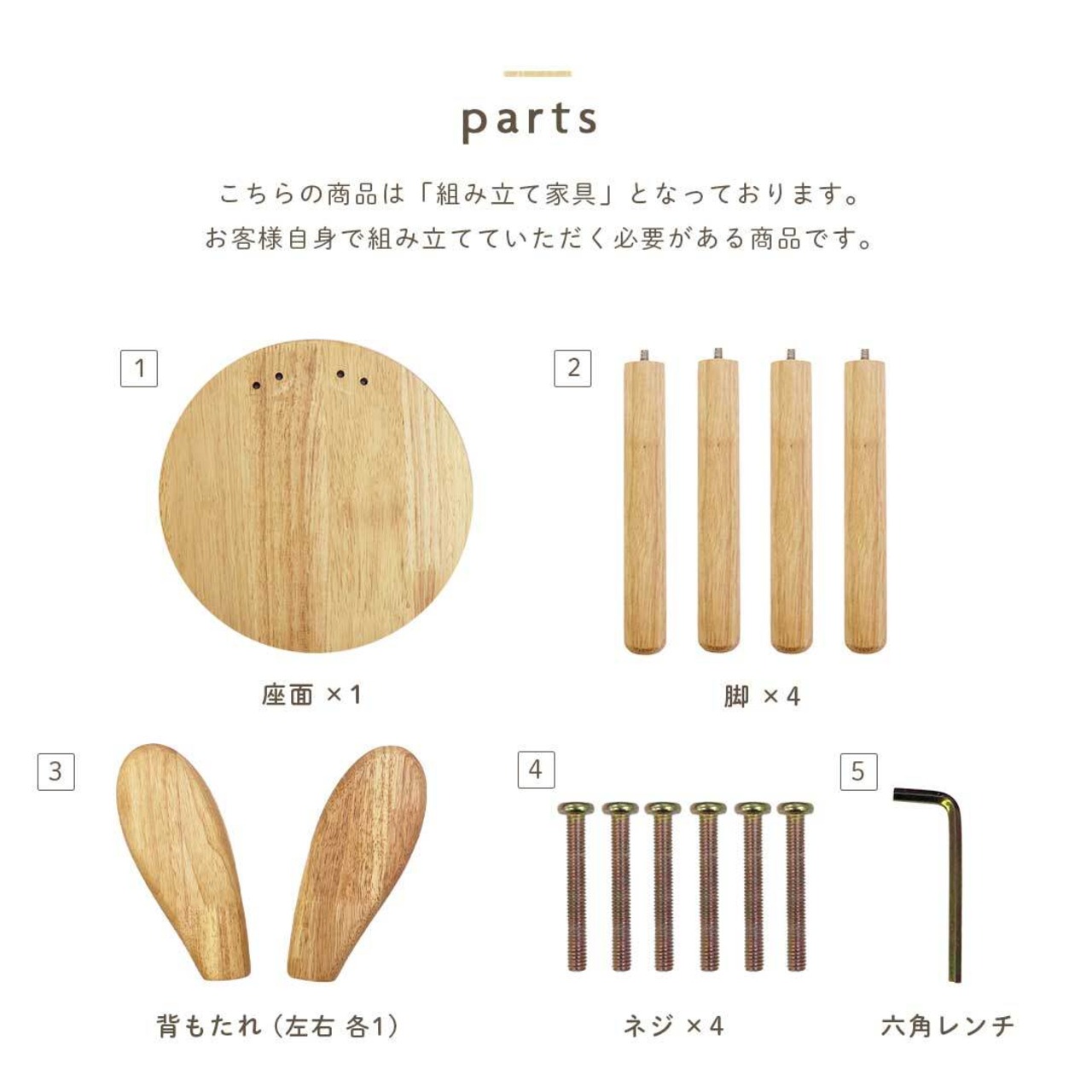工具不要で組み立ても簡単!天然無垢材を使用したチェアは高い耐久性と安定感を誇ります。また、脚には床を傷つけないように保護フェルトが付いているので、どこでも気軽に置いていただけます