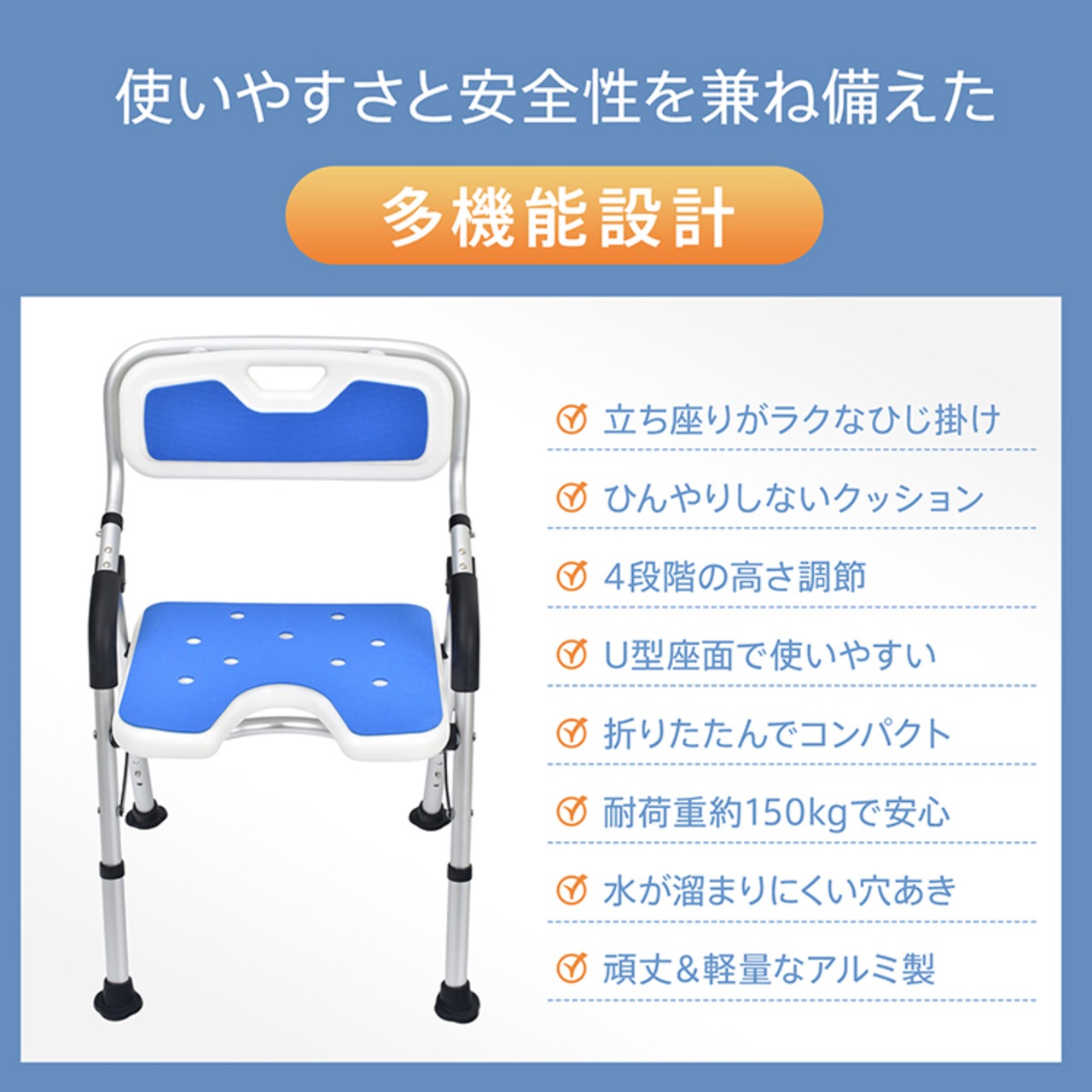 シャワーチェア 風呂椅子 背もたれ ひじ掛け 脚ゴム 介護椅子 高齢者 入浴補助 バスチェア 風呂イス 肘掛
