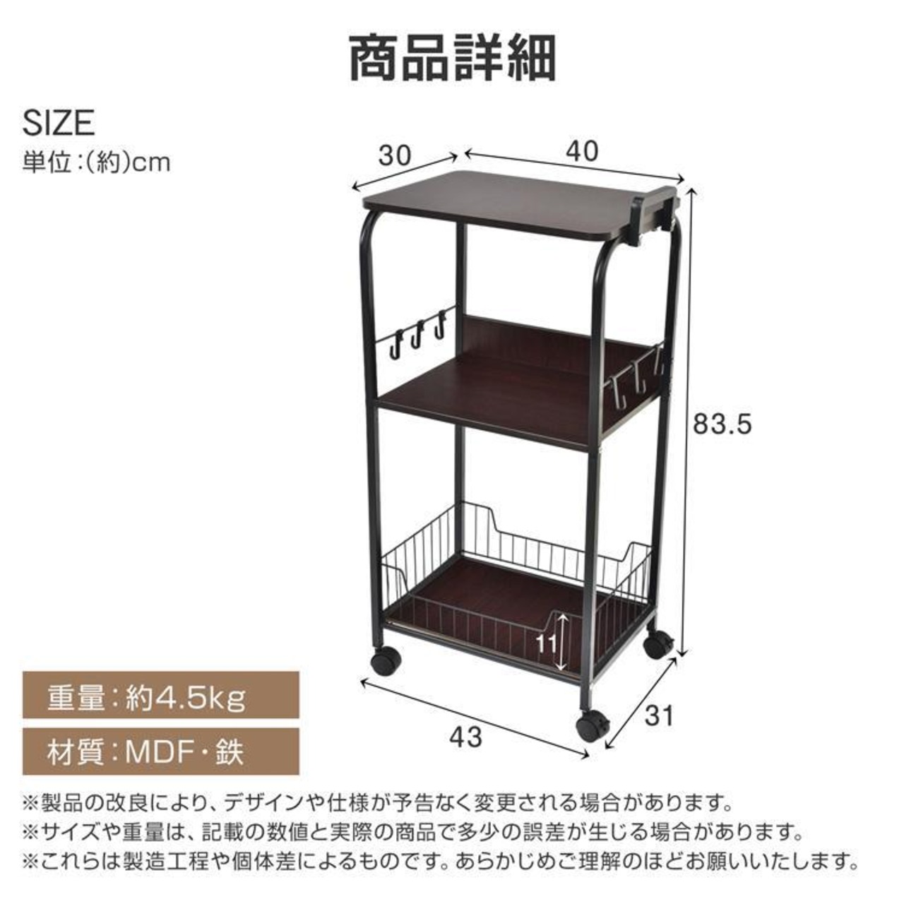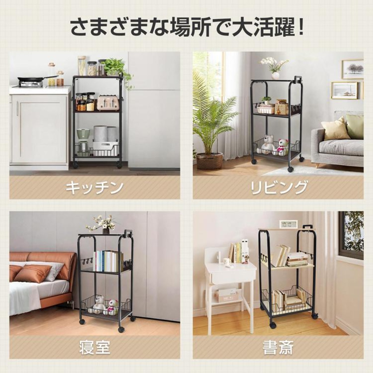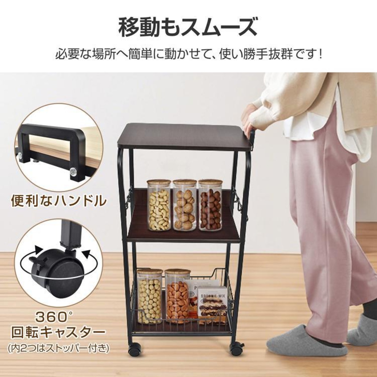 キッチンワゴン 3段 キャスター付き 収納 ラック スリム ワゴン カウンター ハンドル 取っ手 サイドフック