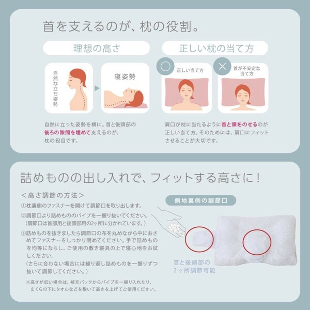 首・肩に負担が掛かりにくい構造の〈西川〉×医学博士のフィットまくら。