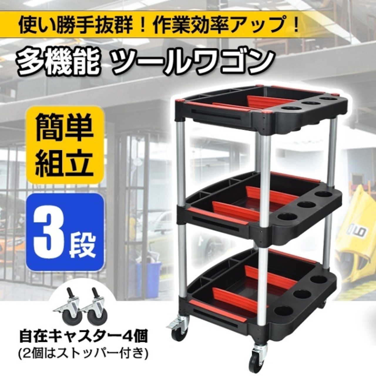 ツールワゴン3段 キャスター付き 工具 ツールカート ラック マルチワゴン 台車 ガレージ カー用品 作業 DIY