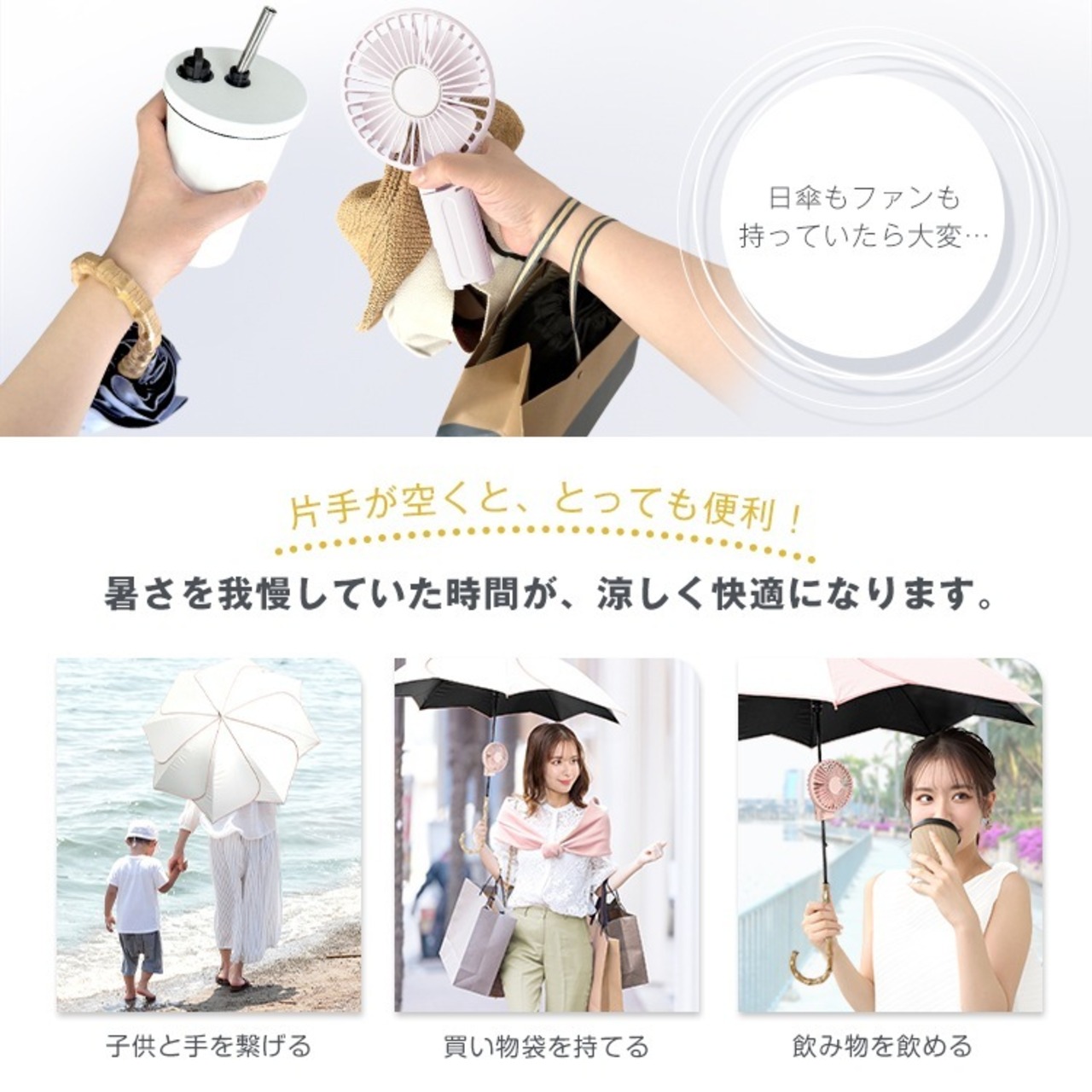 日傘用扇風機 日傘クリップファン ハンディファン デスクファン 傘 傘に挟む クリップ扇風機 携帯 USB充電