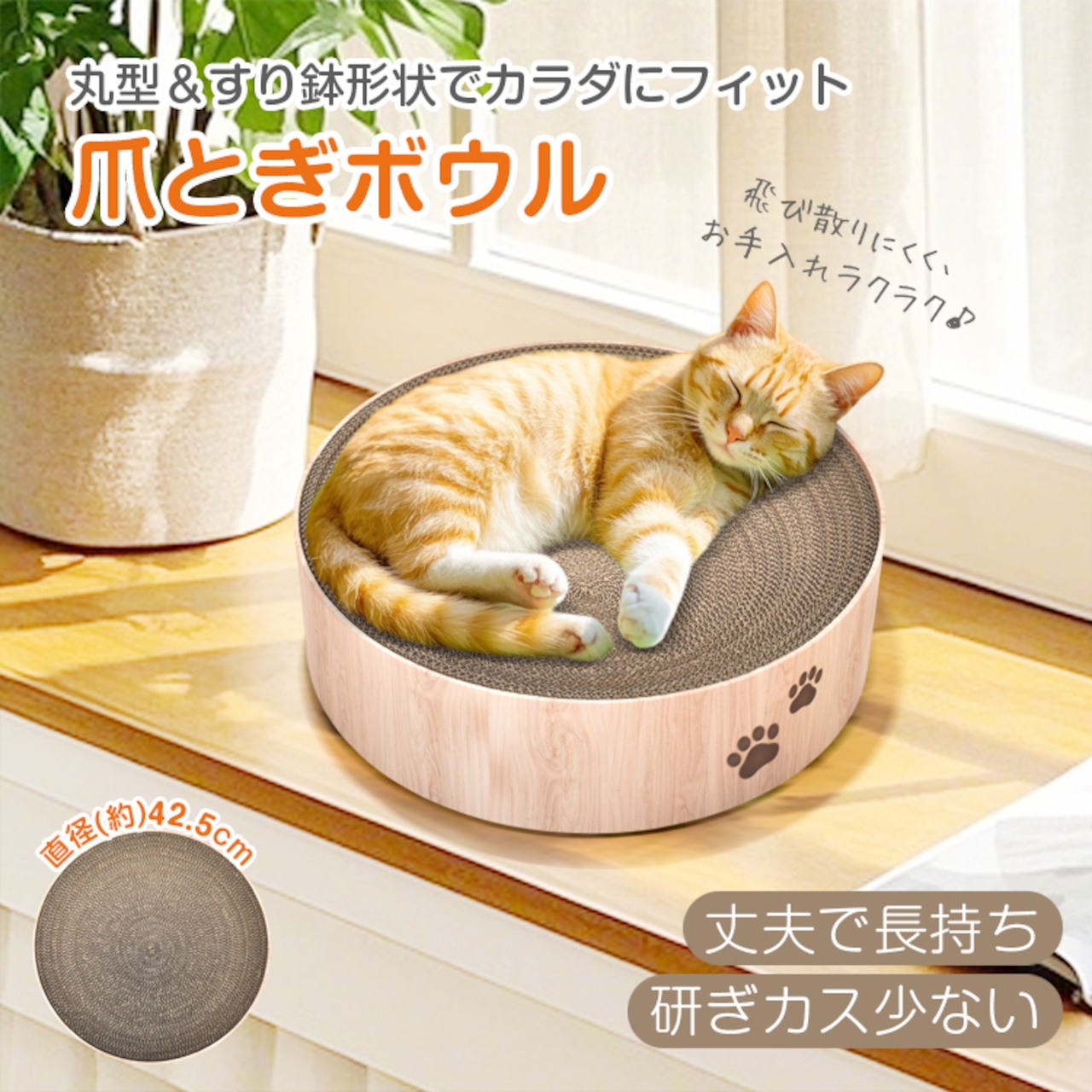■丸型&すり鉢形状で、猫ちゃんの体にぴったりフィットする爪とぎボウル
