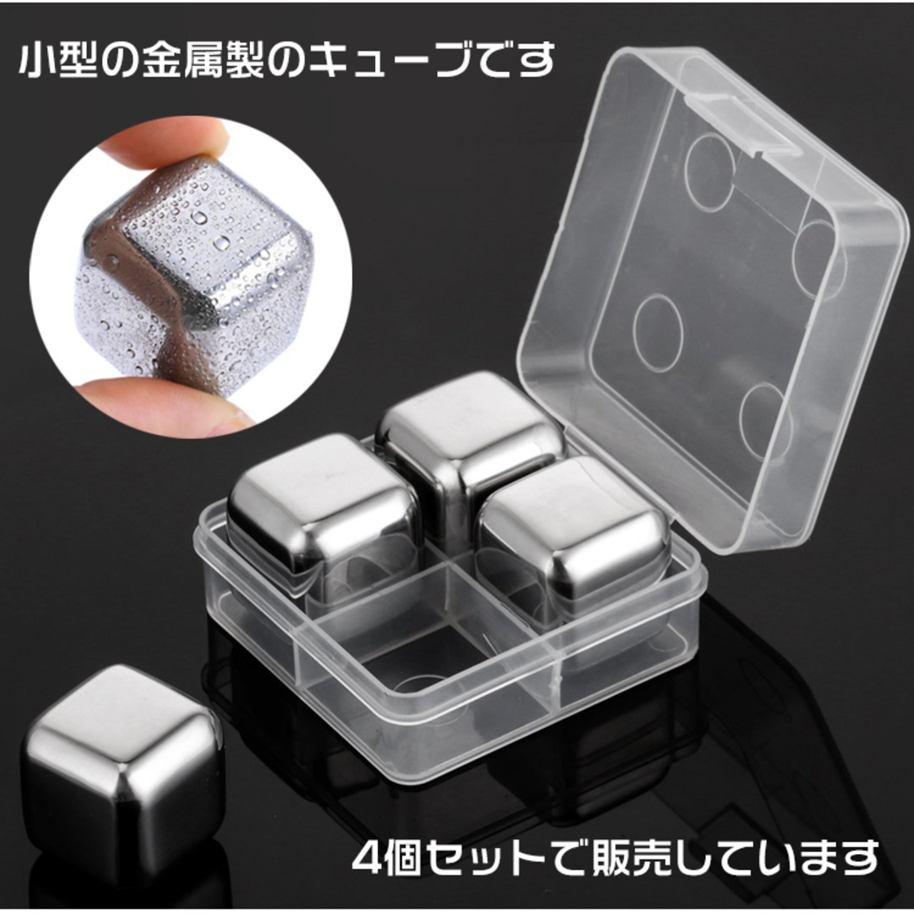 溶けない氷 ステンレス製 アイスキューブ 4個入 製氷機 金属 永久氷 冷凍庫 くり返し 使用 角氷