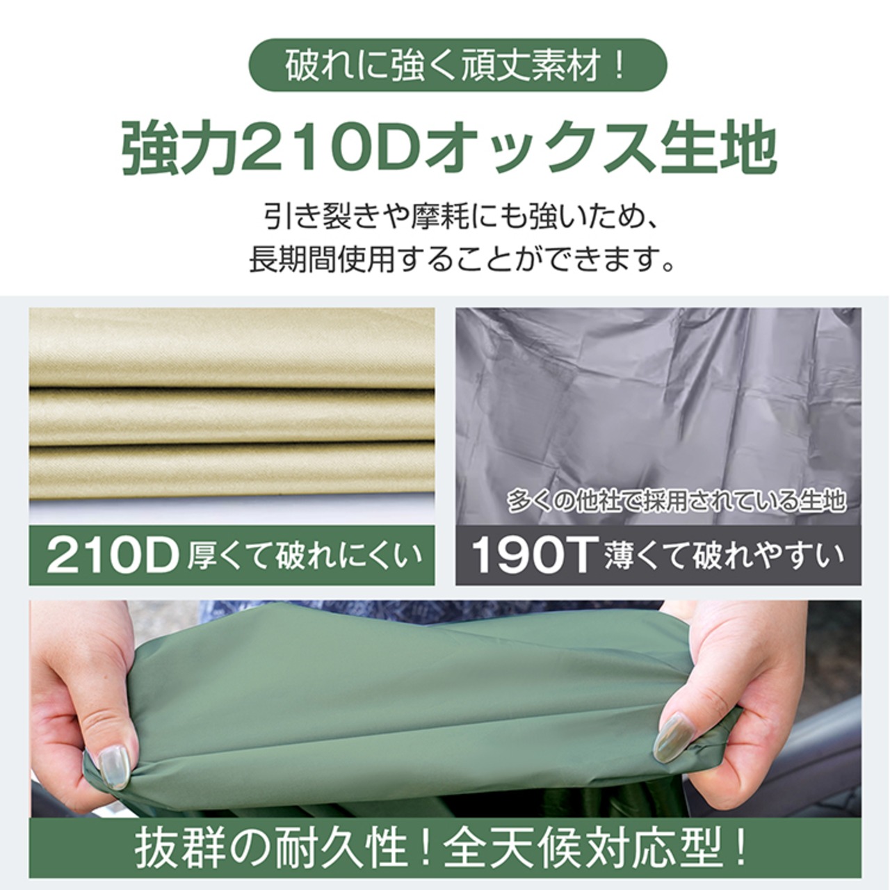 ■210Dオックスフォード生地なので引き裂きや摩耗に強く、長期間使用することができます。