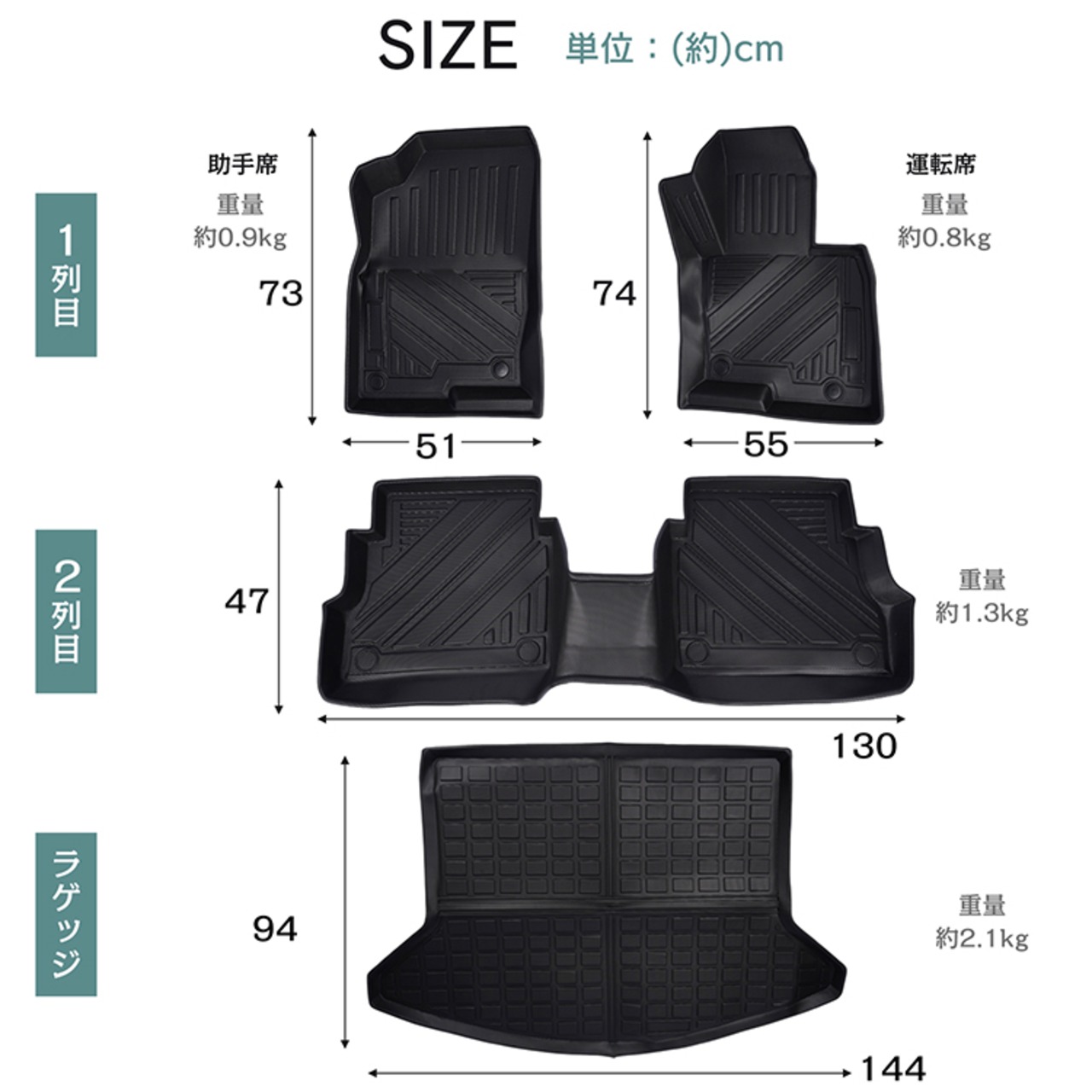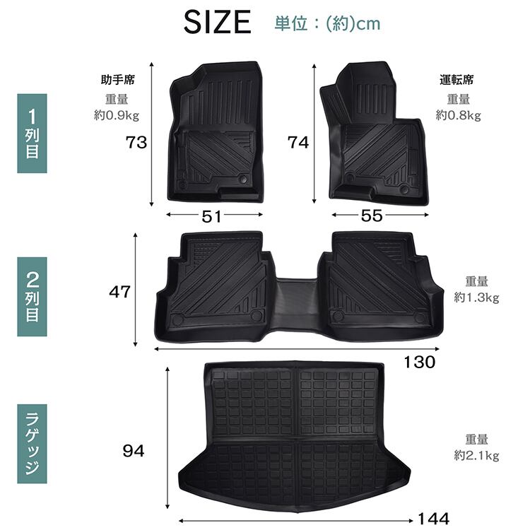 【重量(約)】:助手席/0.9kg・運転席/0.8kg・2列目/1.3kg・ラゲッジ/2.1kg