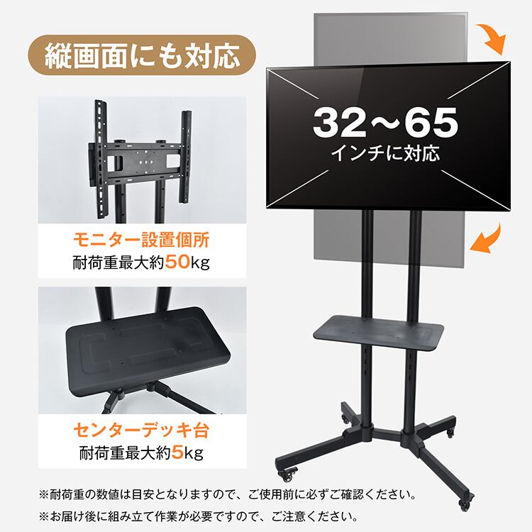 【耐荷重(約)】:モニター/50kg・中央棚/5kg