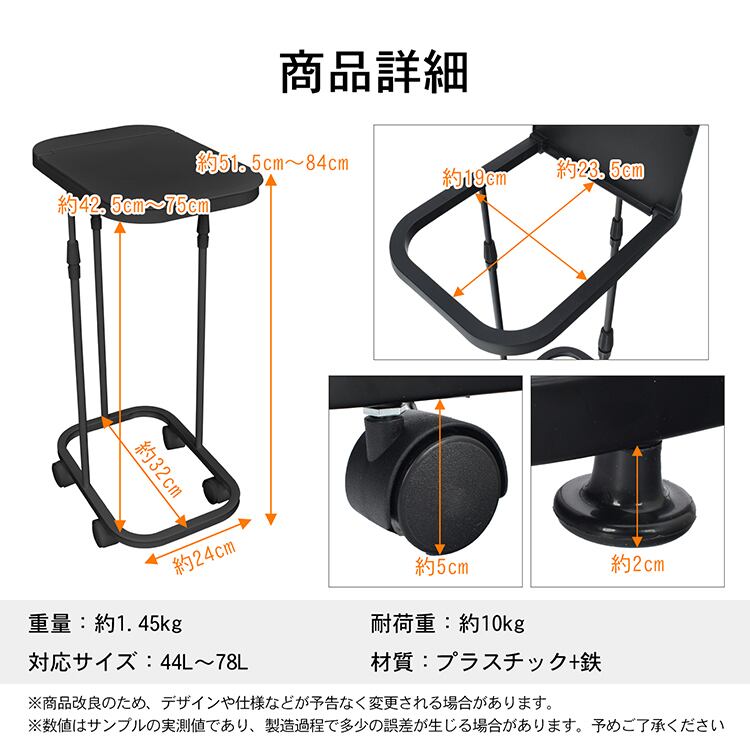 ゴミ袋ホルダー 蓋付き 縦開き スリム 44L~78L 45L 70L 伸縮 高さ調節 キャスター