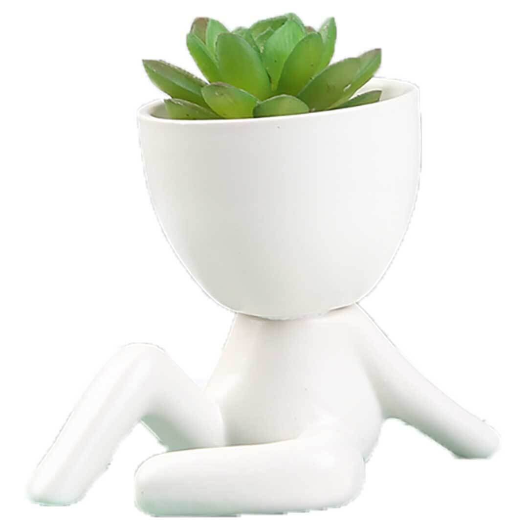 ミニ植木鉢 小人型 ホワイト 陶器 セラミック ガーデニング 植木鉢 多肉植物 サボテン 園芸 プランター