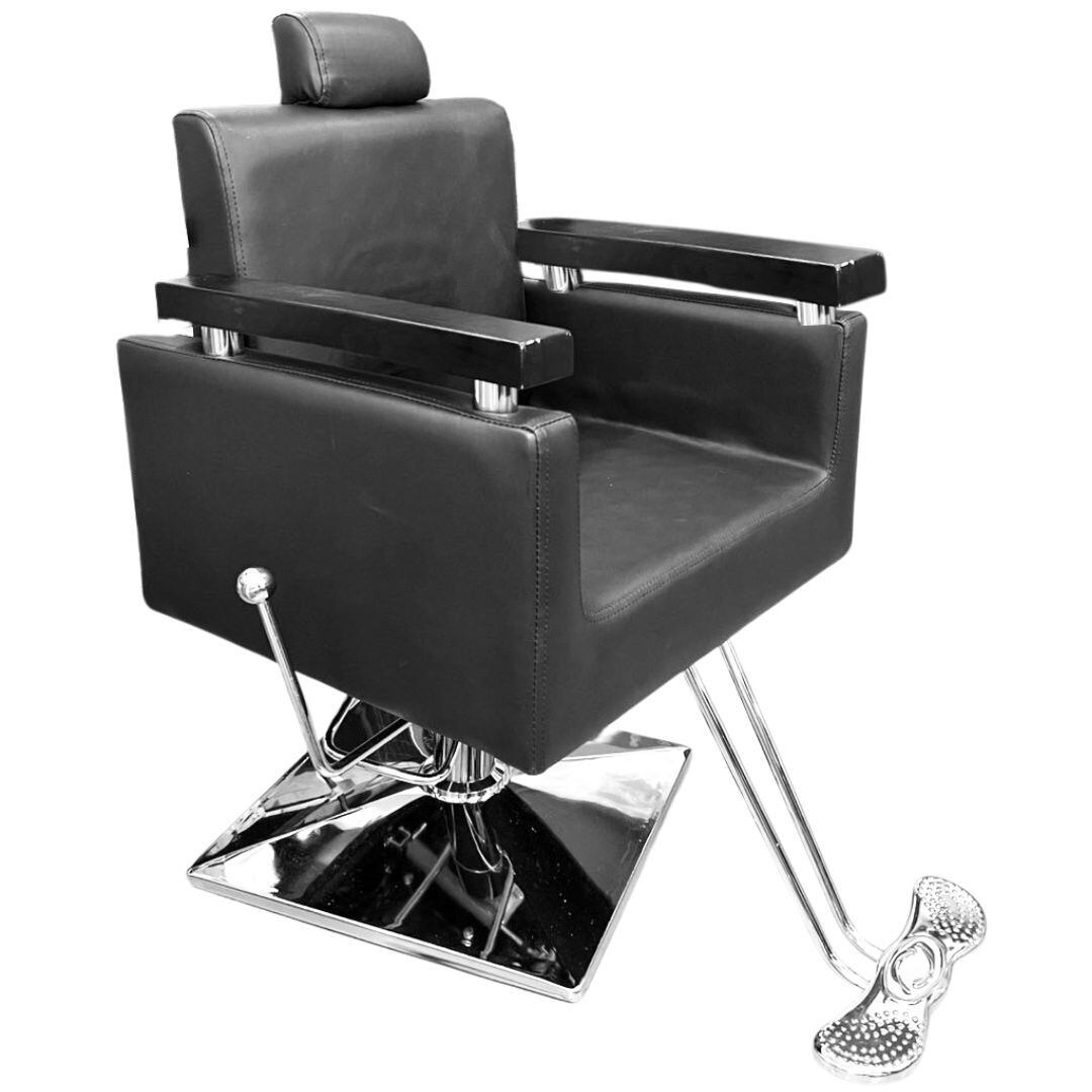 サイドレバーを引くと背もたれの角度を調整できるため、シャンプーやシェービングなど、さまざまな施術に対応できます。(頭部分は上に引っ張って調節します)