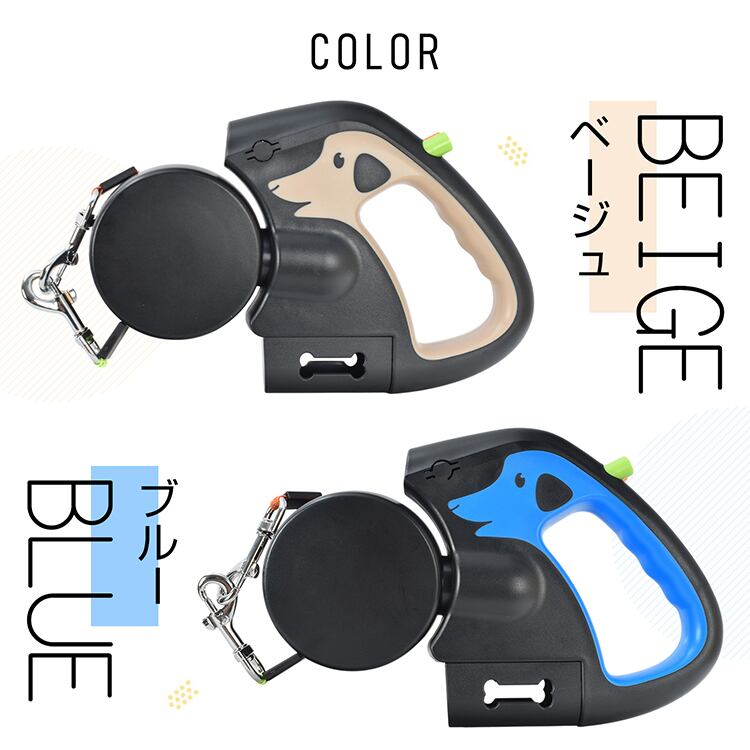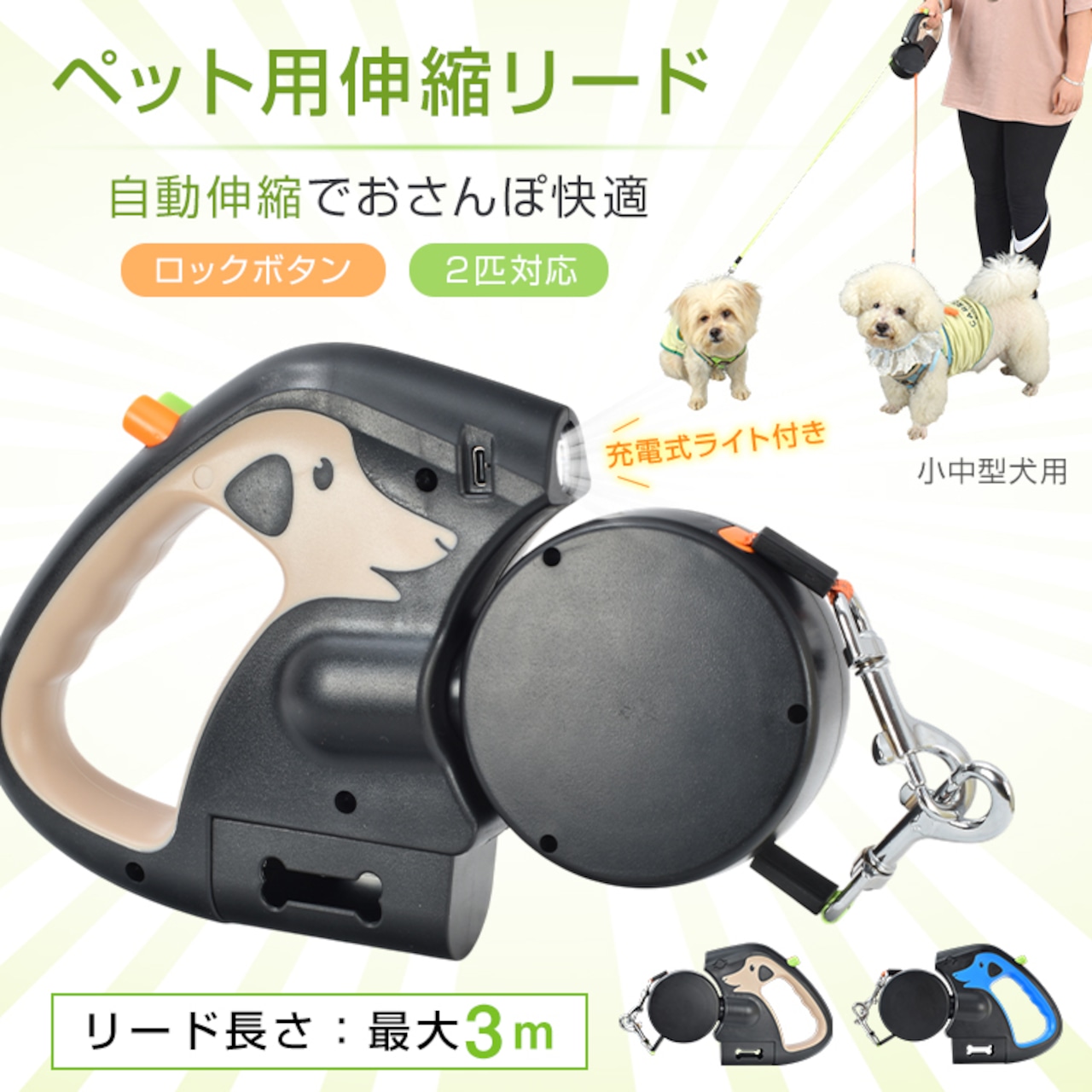 ペット用リード 犬 リード 伸縮リード 自動伸縮 小型犬用 中型犬用 2頭 2匹 多頭飼い 3m