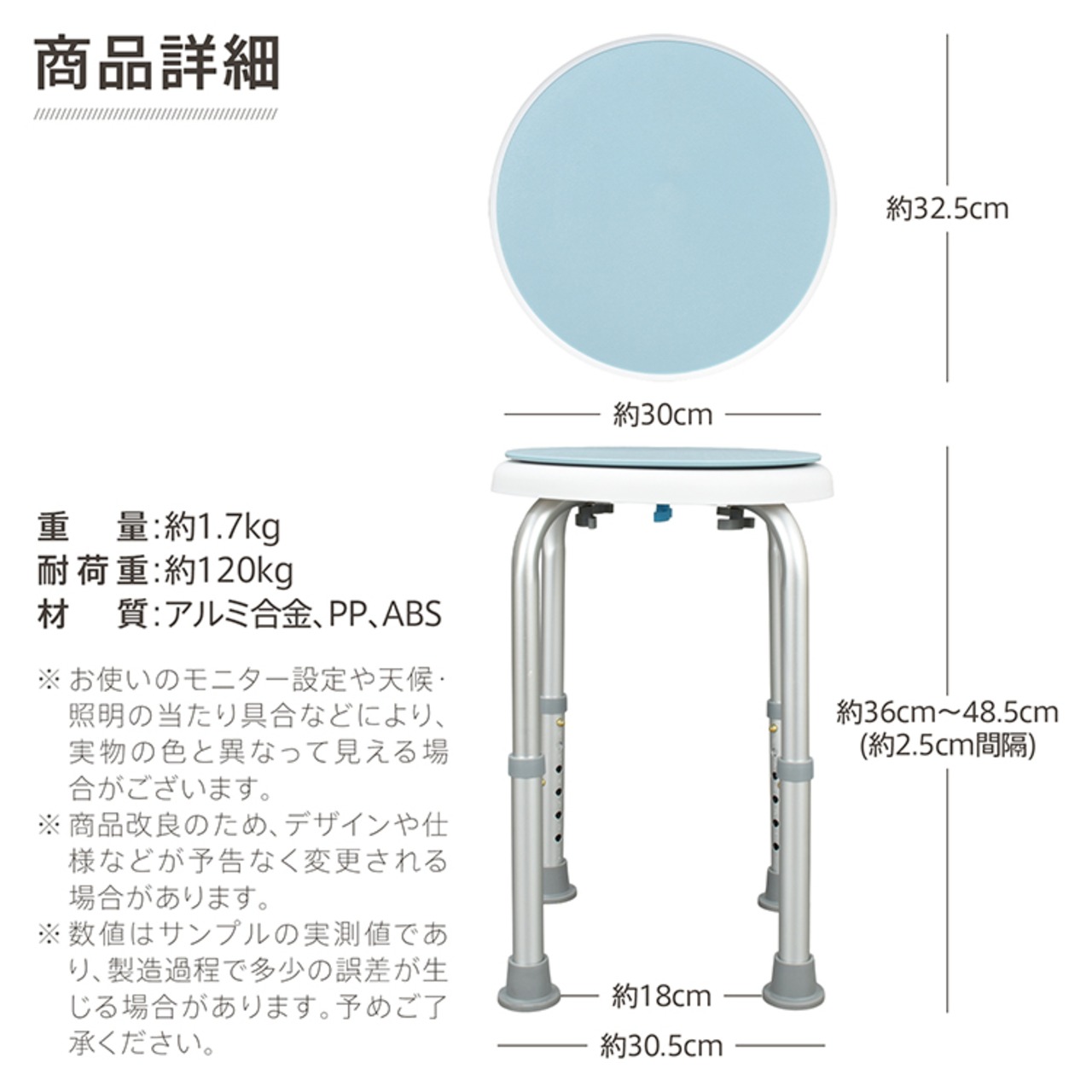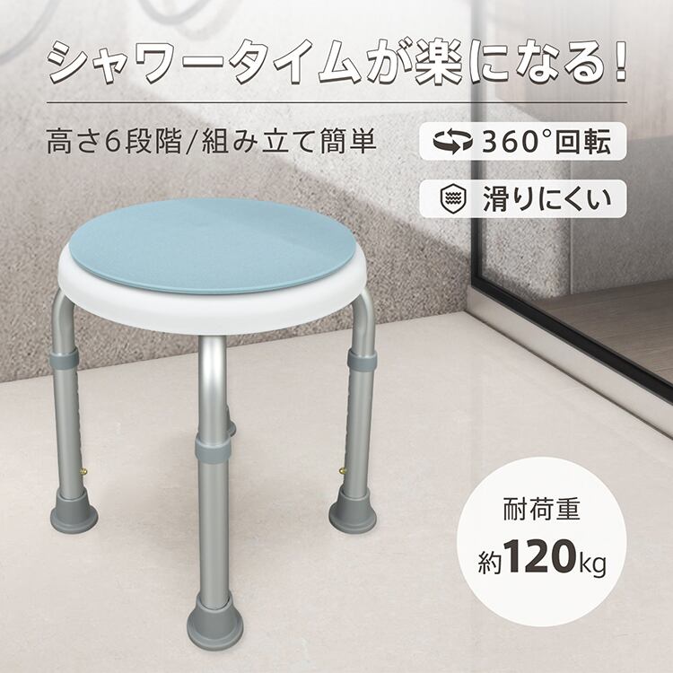 シャワーチェア 360度 回転 高さ調節 滑り止め 排水穴付き 浴室 椅子 風呂椅子 バスチェア