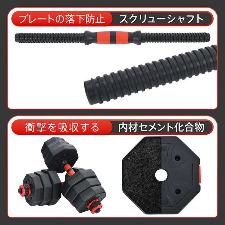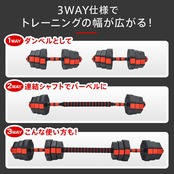ダンベル 20kg 2個セット 10kg×2セット 可変式 3way バーベル シャフト付き