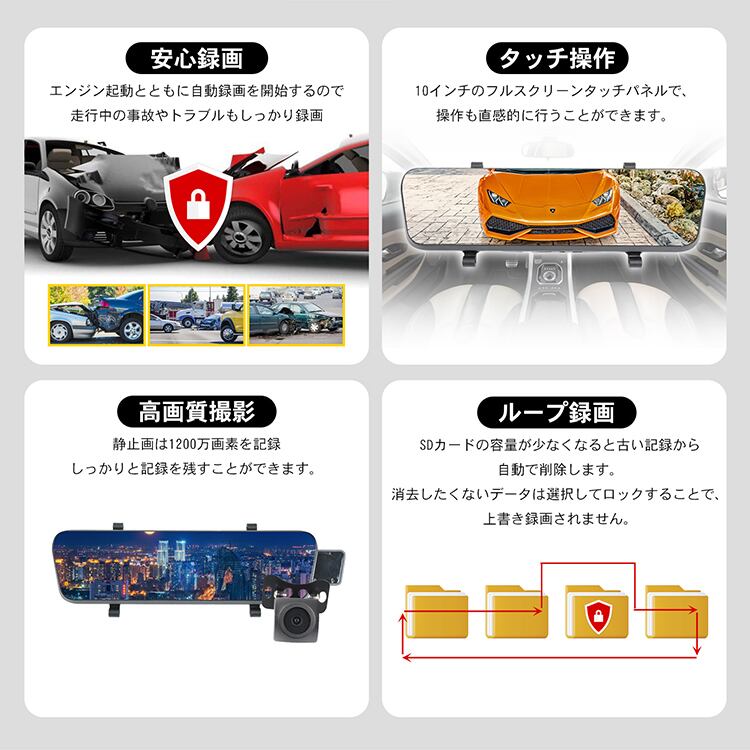 ミラー型ドライブレコーダー ミラー型 ストリーミングミラー 事故記録 カー用品 録画