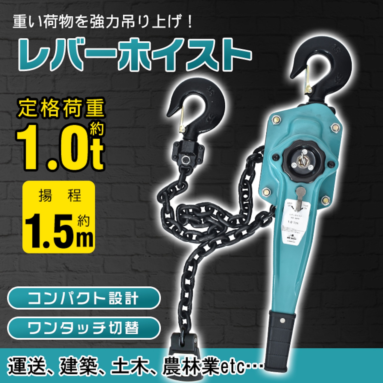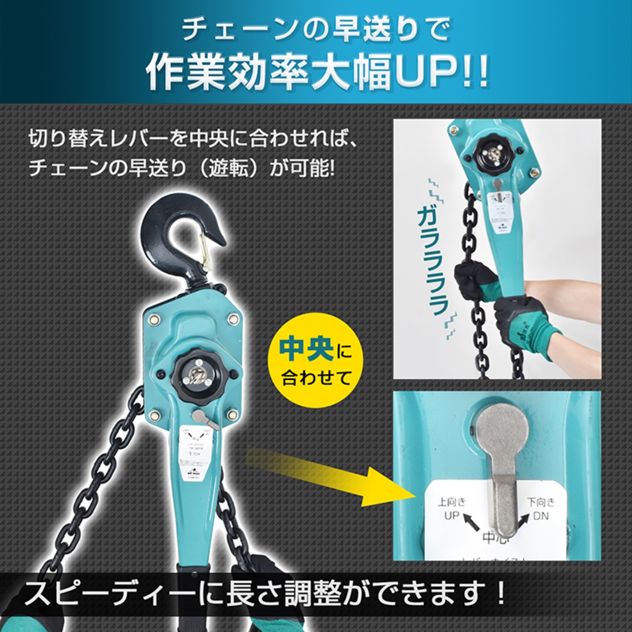 レバーホイスト 1t 1トン 1ton 揚程 1.5m チェーンブロック 軽量 ワンタッチ チェーン