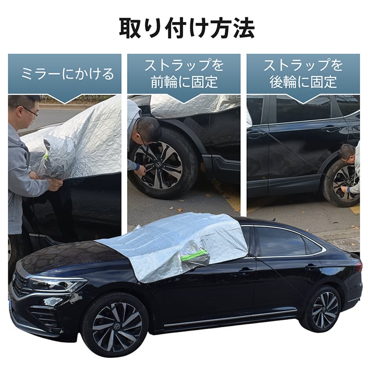 ■フロントガラスに被せるだけで、雪・霜・汚れをまとめて防止