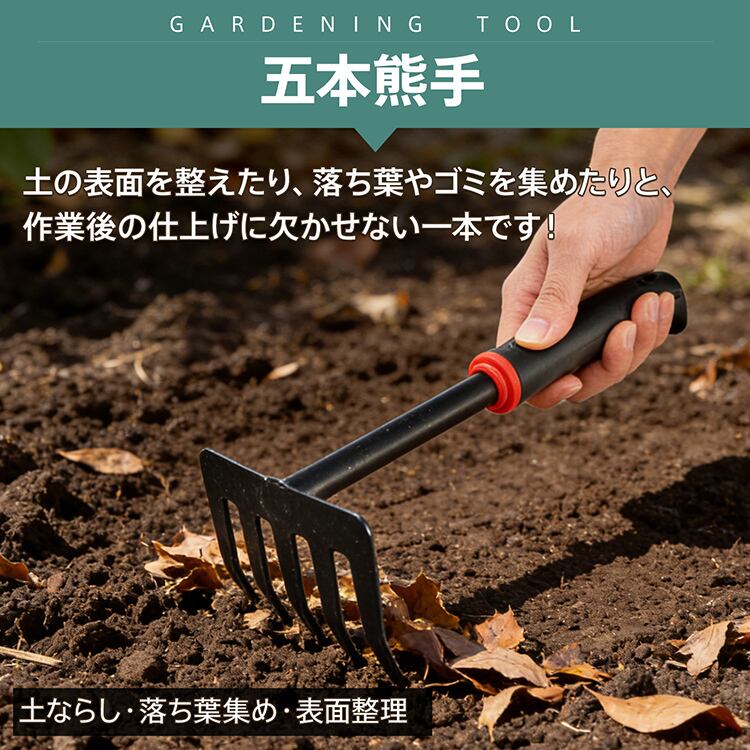 ガーデニングツール スコップ シャベル 本組 草刈り 五本 熊手 鍬 くわ 片手二徳鍬 レーキ ガーデニング