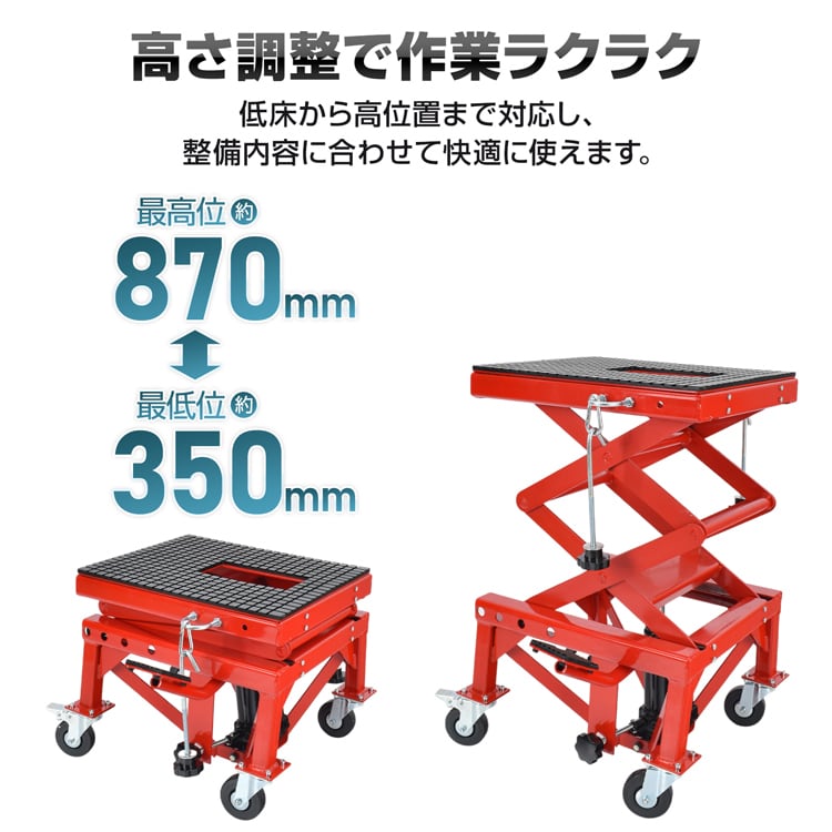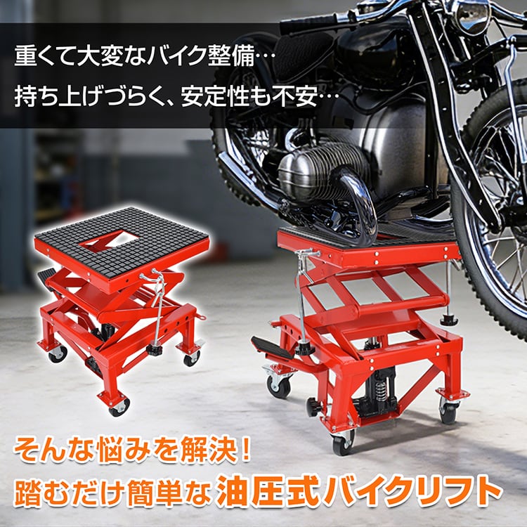 バイクリフト 油圧式 バイクジャッキ リフト バイクスタンド 足踏み 耐荷重200kg オートバイ キャスター