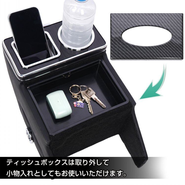 ■引き出し収納やティッシュボックスを備えた大容量設計で、車内をすっきり整理できます