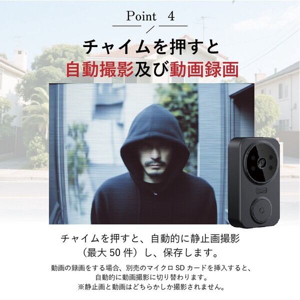 モニターで確認できるから安心!チャイムを押すと自動撮影、動画録画