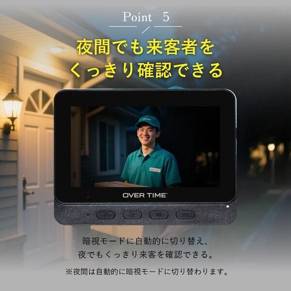 【2026年12月中旬】OVER TIME カメラ付きコードレステレビドアホン OT-DP43S