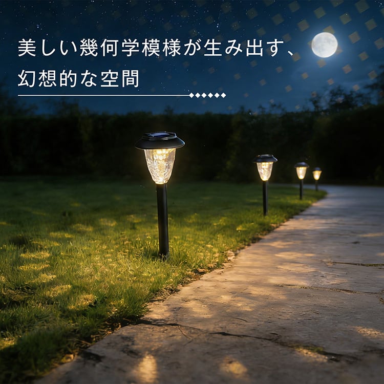 ソーラーガーデンポールライト 6個セット 幾何学模様 影絵 庭 駐車場 地面 アート 間接照明 反射光 装飾