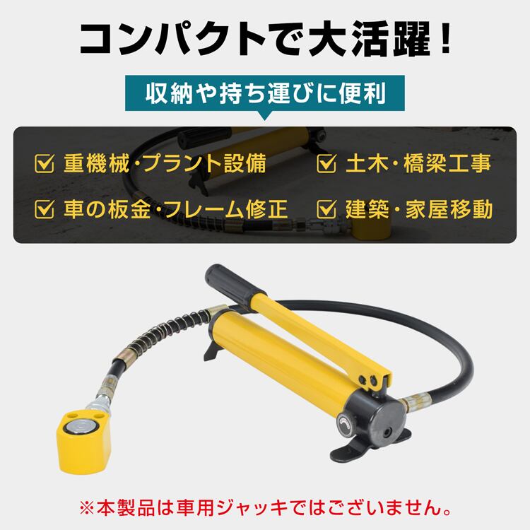 短型ジャッキ 油圧 小型 横使用 昇降 無段階 持ち上げる 押す 重機械 土木 工事 建築 フレーム 修理 5t 8mm