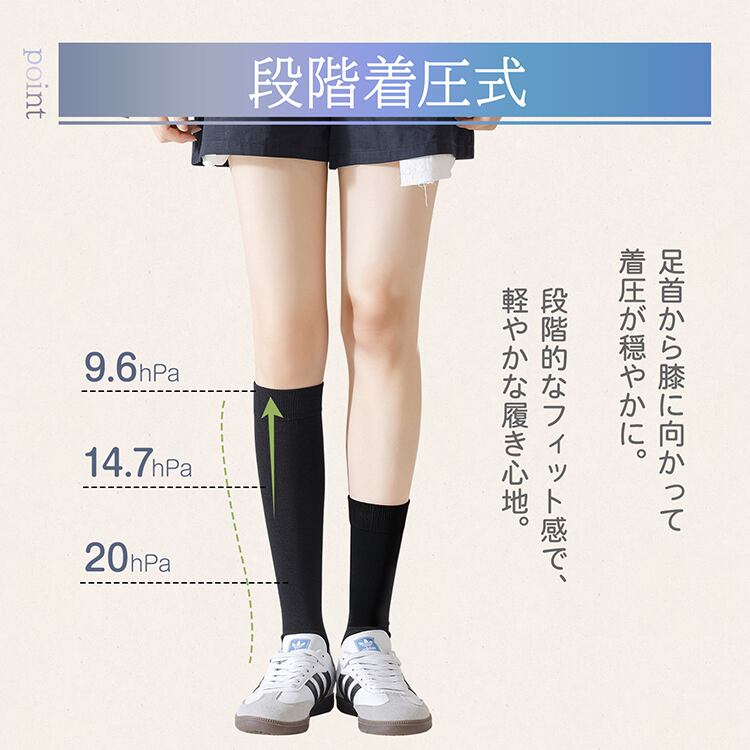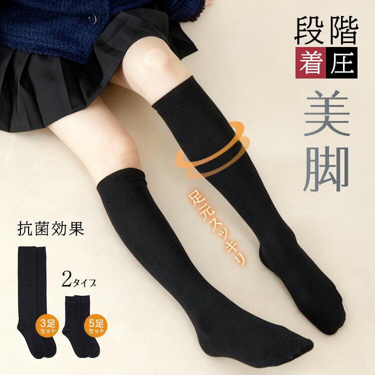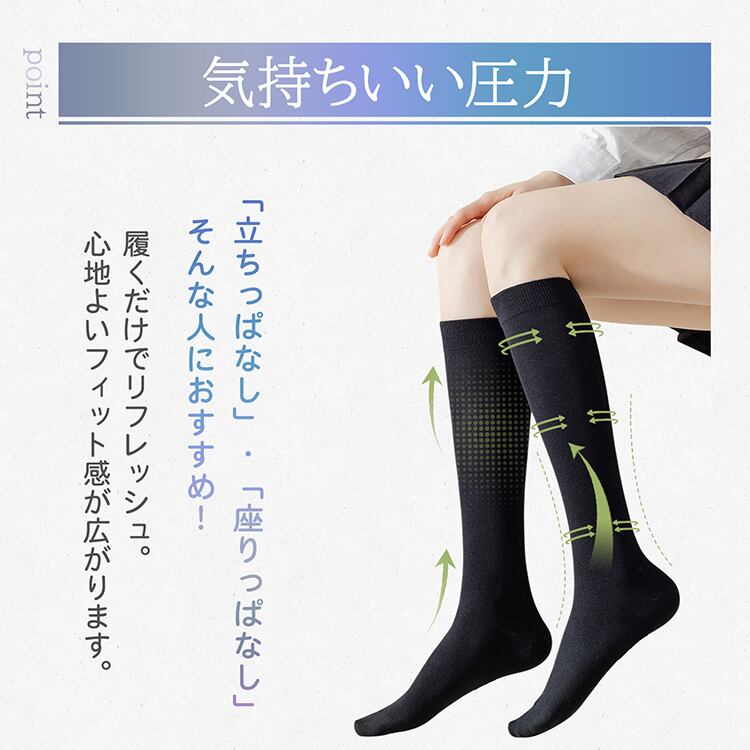 着圧ソックス ハイソックス クルーソックス 抗菌 締め付け 圧力 細見え スッキリ クルー丈 膝丈 膝下