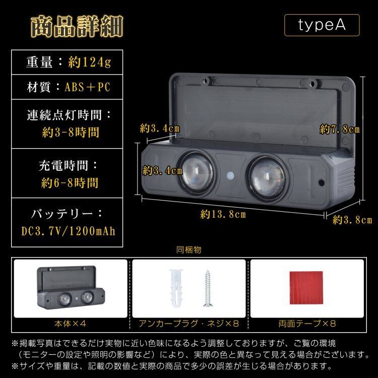 【夜間点灯時間】:(約)3-8時間