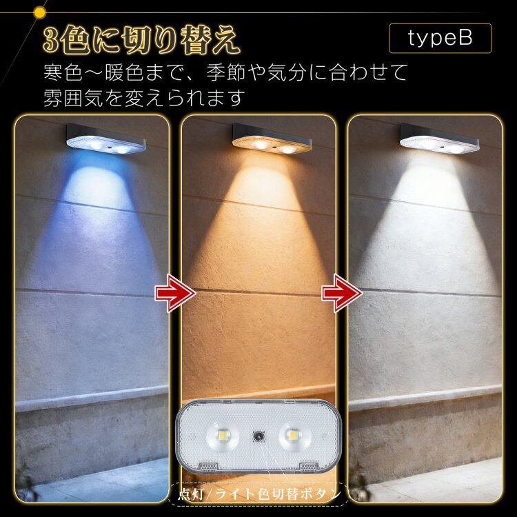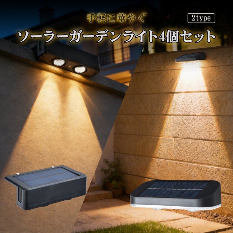 ガーデンライト 4個セット ソーラーライト フェンスライト LED 自動 壁掛け 塀 玄関 防水 ライト色 切替