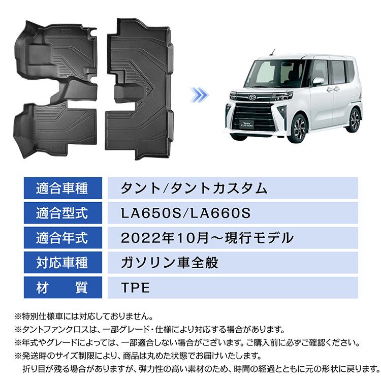 車用 フロアマット タントカスタム 専用 LA650S LA660S 3D フルセット TPE素材 水洗いOK 汚れ防止 高耐久