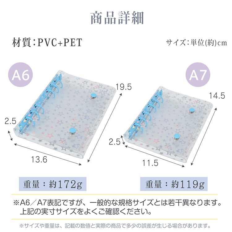 クリアシール帳 ミニバインダー リフィル10枚 透明 星柄 シール交換 立体シール 推し活 リフィル付き