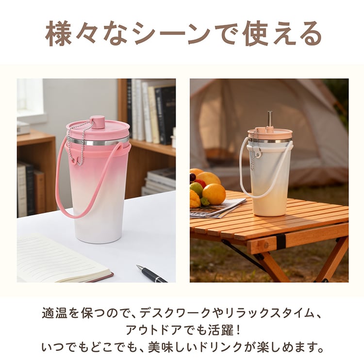 タンブラー セラミック 伸縮ストロー付き 蓋付き 水筒 大容量 600ml 保温 保冷 真空断熱 二重構造 直飲