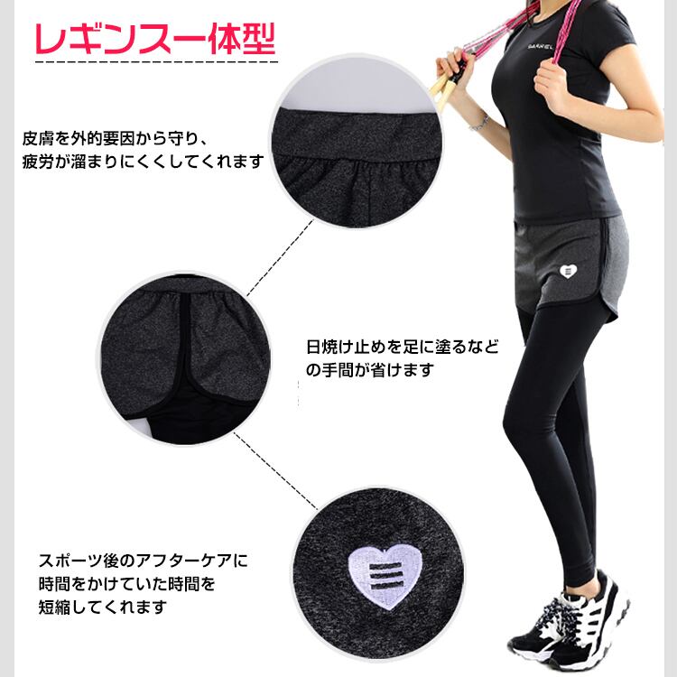 ショートパンツ レギンス 一体型 レディース ヨガ ジム セット トレーニングウェア スポーツ フィットネス