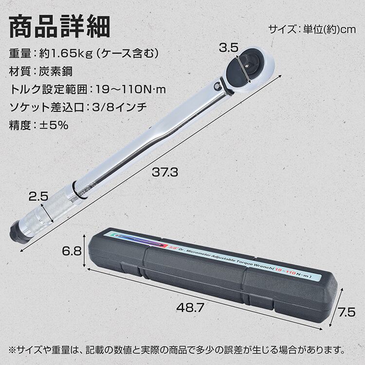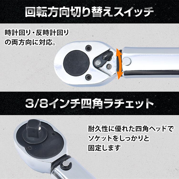 トルクレンチセット 3/8インチ 19-110N・m バイク エンジン整備 ソケット5種 14mm 17mm 19mm 21mm 24mm