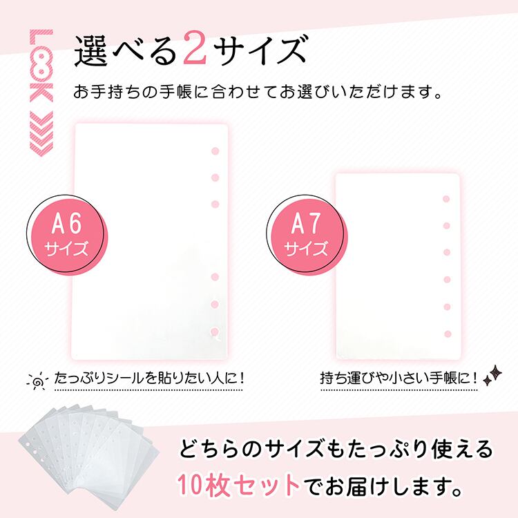シール台紙 10枚セット 透明 クリア A6 A7 6穴 ステッカー 立体シール 剥がせる 付箋 コラージュ 手帳