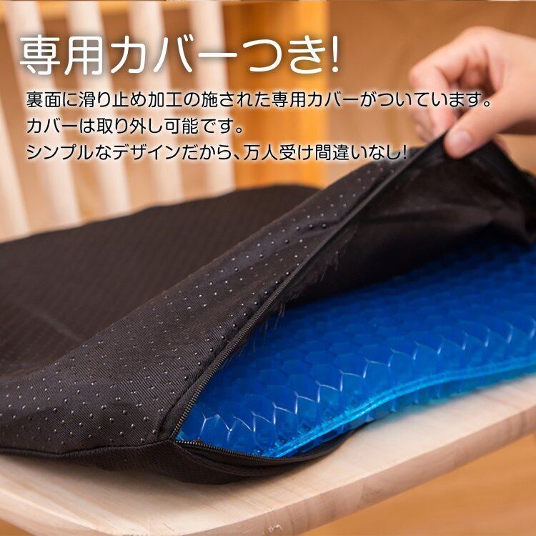 ジェルクッション 無重力 ゲル 低反発 衝撃吸収 座骨 保護 快適 座布団 カバー付き 運転 ドライブ 腰痛対策