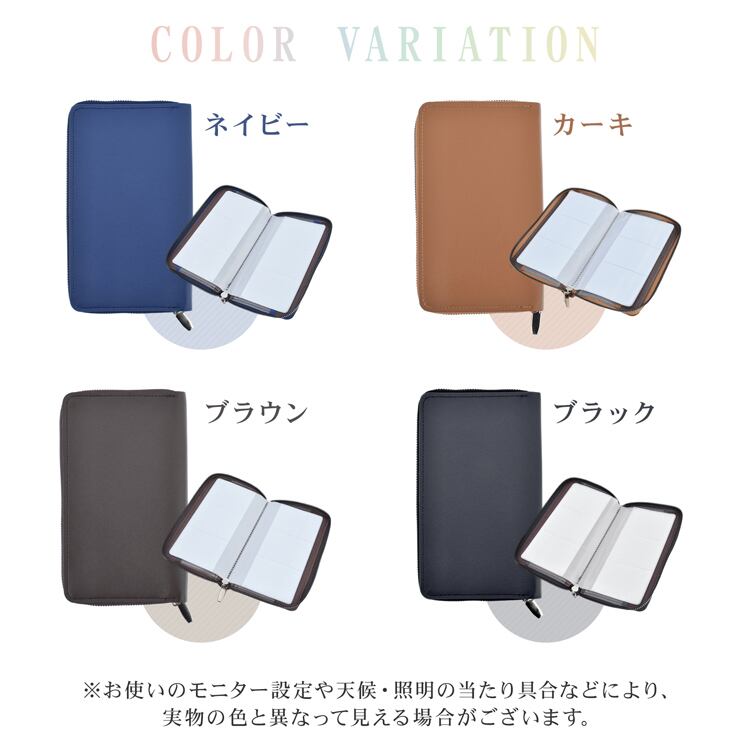 カードケース 大容量 60枚 収納 マルチケース ブック型 PUレザー ファスナー 診察券 通帳 免許証 領収書