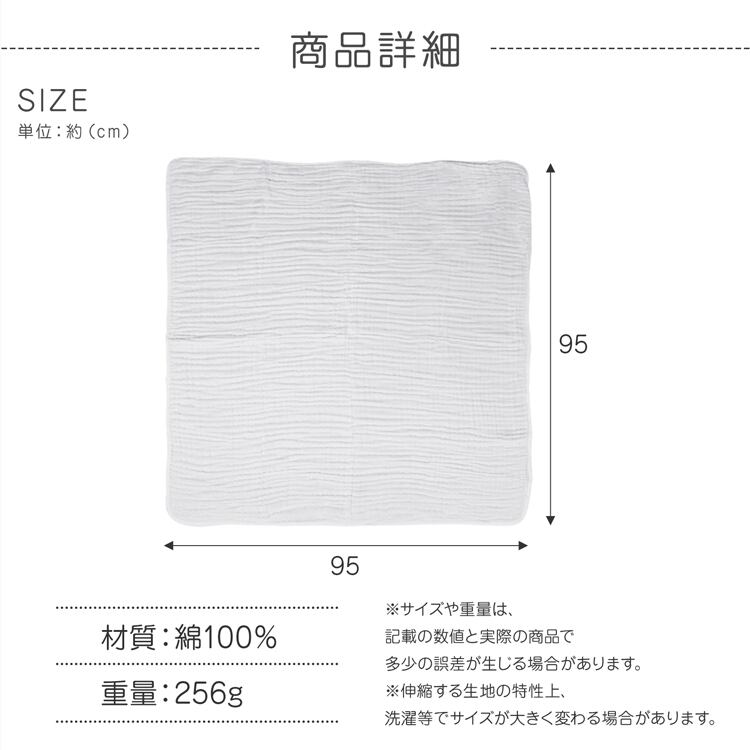 ガーゼタオル 綿100% 吸水性 95×95cm 正方形 子供用 お風呂 ブランケット プレゼント