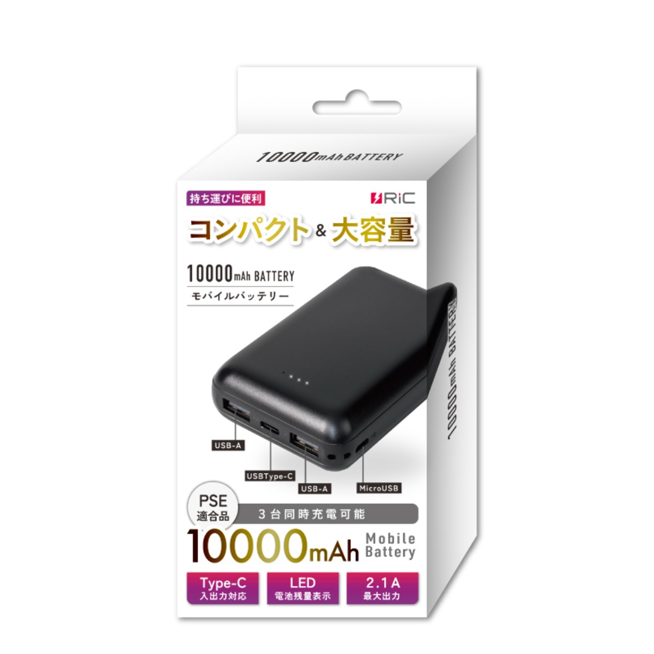 モバイルバッテリー スマートバッテリー 10000mAh PSE適合品 3台同時充電可能 Type-C出力対応 最大出力2.1A