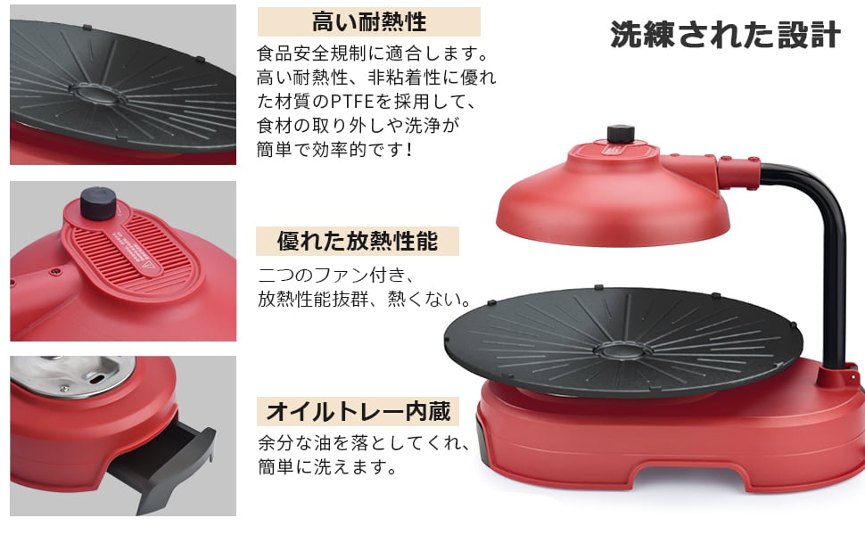 キッチン家電/家庭用 回転式グリルロースター/遠赤外線/卓上グリル/煙が少ない/2-5人用/首振り レッド