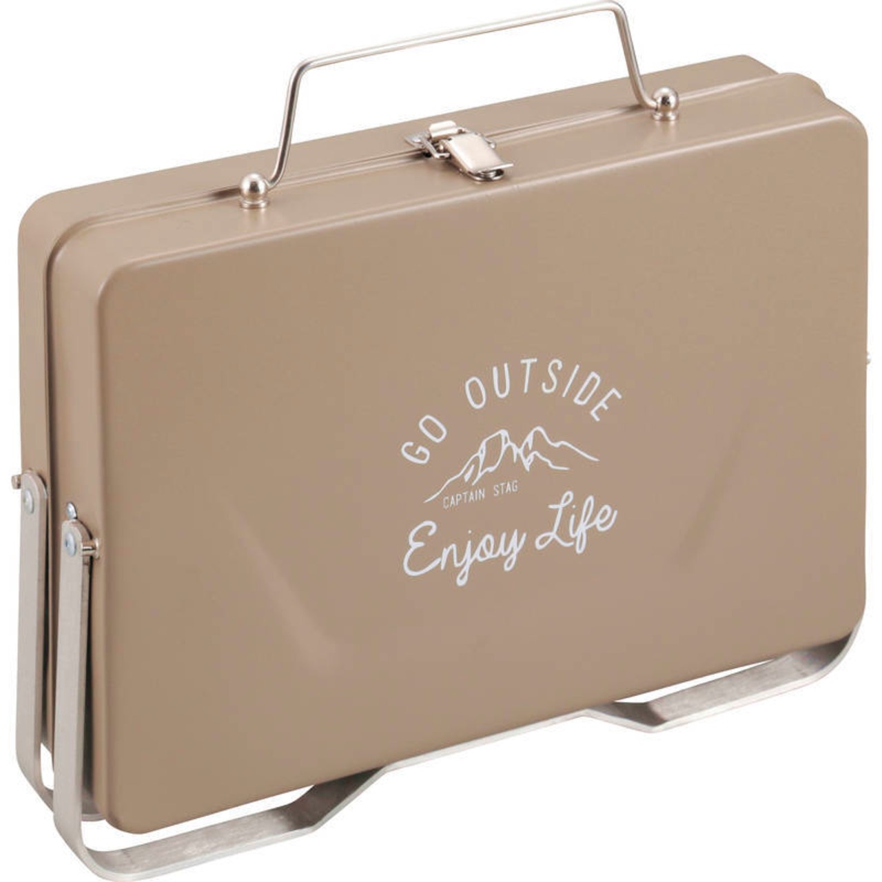 ソロキャンプやお花見に最適な卓上コンパクトグリル。収納時は持ち運びしやすいトランク型になります。