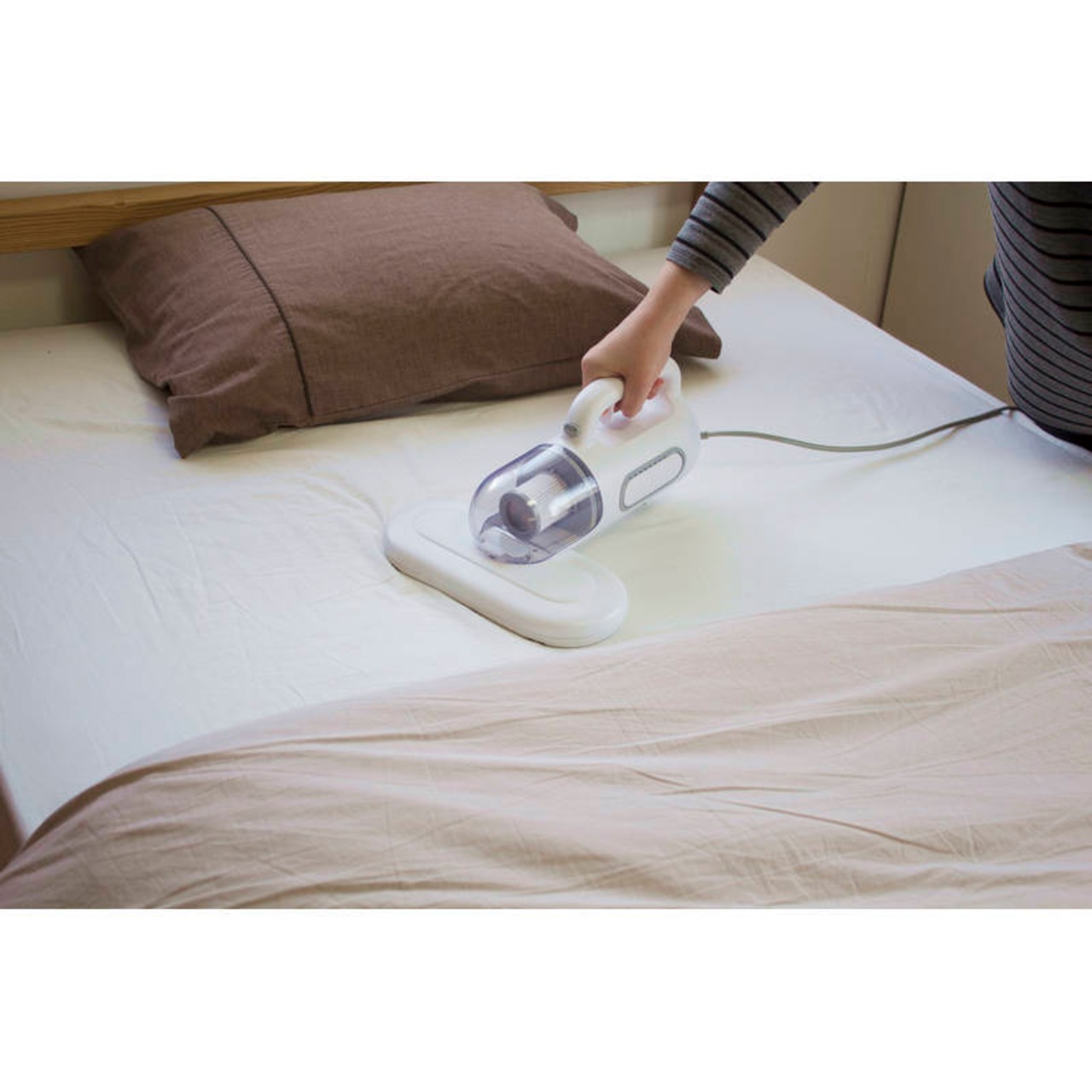 UVランプ除菌と高速振動で毎日快適睡眠・2つのたたきパッドの高速振動(約7,000回/分)でベッドや布団に潜むダニや細菌を浮き上がらせて、しっかり吸引。・目に見えないアレル物質はUVランプで除菌(120秒間照射した除菌率約99%)・ハウスダスト除去率99%以上(移動速度30cm/秒で2往復)・HEPAフィルターを搭載したダストカップで排気もクリーンに。・ダストカップは水洗いでき、衛生的です。